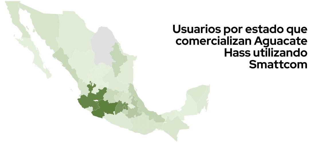 A continuación, te mostramos la presencia de compradores y vendedores de Aguacate Hass por Estado en la App Smattcom.