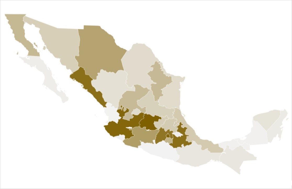 A continuación, te mostramos la presencia por estado de compradores y vendedores de Cebolla Blanca que buscan comercializar su producto a través de la App Smattcom.
