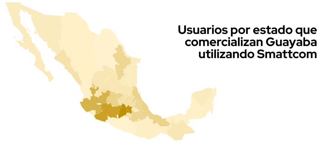 A continuación, te mostramos nuestra comunidad de productores, mayoristas y comercializadores de la Guayaba por Estado en la App Smattcom.