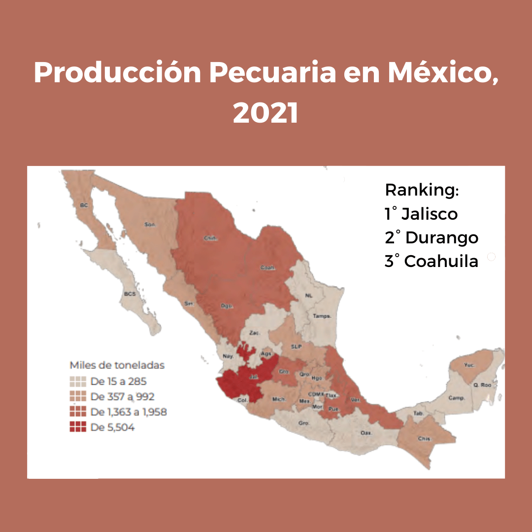 Respecto al sector pecuario, Jalisco, ocupa el primer lugar, con 5, 504, 360 toneladas, que representan el 22.8% de la producción total nacional, con un valor de 108, 507 millones de pesos, 20.4% del valor nacional.