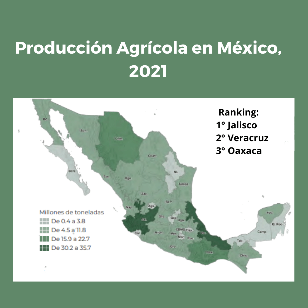 La producción de jalisco representó el 14% de 294, 554,90 toneladas de productos agroalimentarios producidos en México.