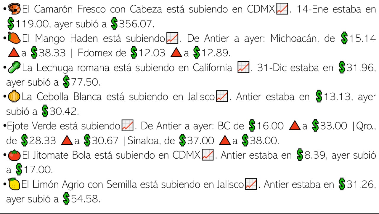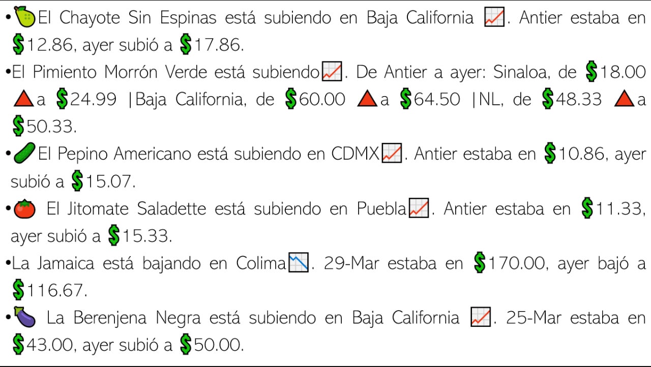 “Durante el episodio crítico de incrementos desmesurados en los precios del maíz a principios del 2007, como resultado de la utilización de este grano en Estados Unidos para producir biocombustible conocido como etanol, México padeció una duplicación en el precio de la tortilla, incrementándose el kilo arriba de los diez pesos.”
