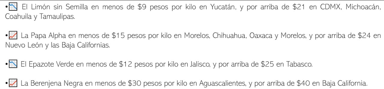 La naranja, jitomate, papa, huevo, aceite, pan de caja, leche, pollo entero, chuleta de puerco y bistec de res son 10 de los 24 productos de la canasta básica que en la primera quincena de mayo.